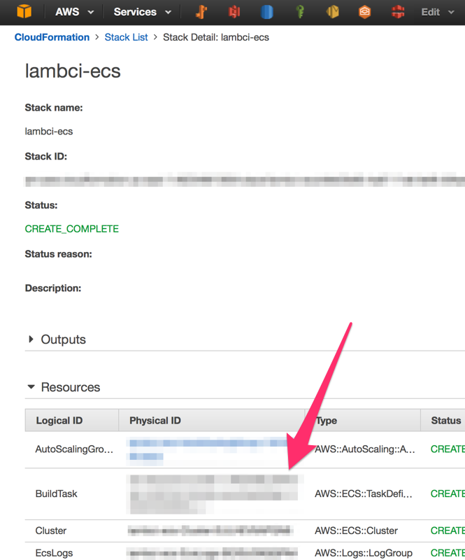 task: 'lambci-ecs-BuildTask-1PVABCDEFKFT',