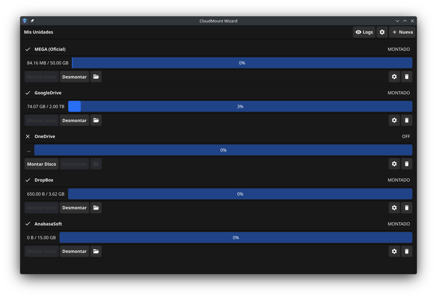 CloudMount Wizard es una aplicación de escritorio que simplifica la gestión de almacenamiento en la nube bajo Linux. Diseñada con una interfaz gráfica intuitiva usando Fyne, permite montar tus servicios favoritos de almacenamiento en la nube como si fueran discos locales, sin necesidad de usar la terminal.