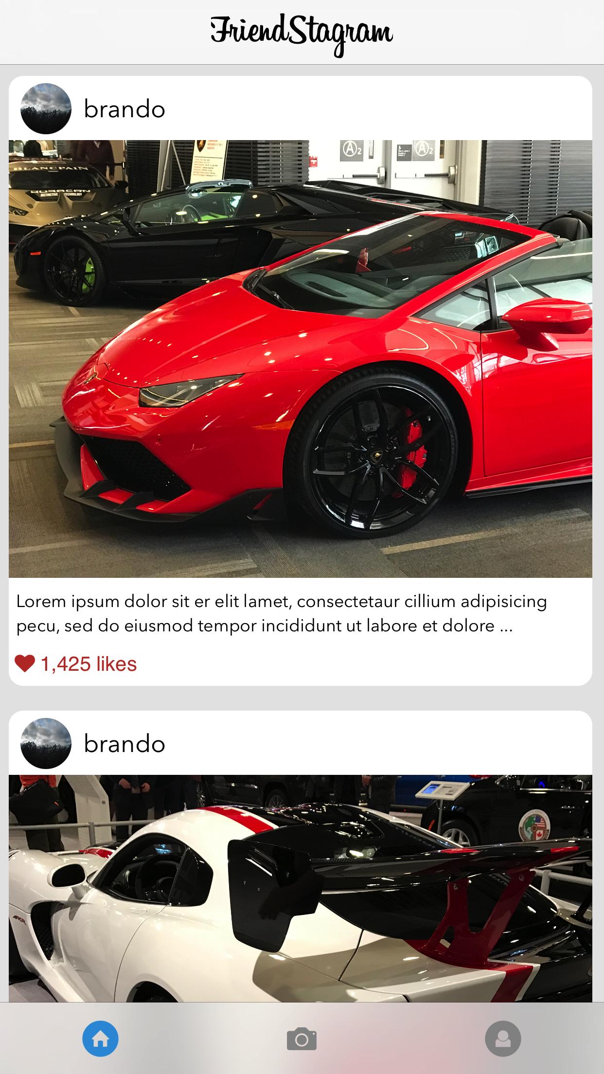FriendStagram iOS Client! This is a Instagram Replica build using native iOS languages. It is powered by a custom backend, that can be found here https://github.com/BrandonDanis/FriendStagram-Backend CURRENTLY RE-BUILDING THE APP FROM GROUND UP Login & Register Views Feed & Profile View Image View