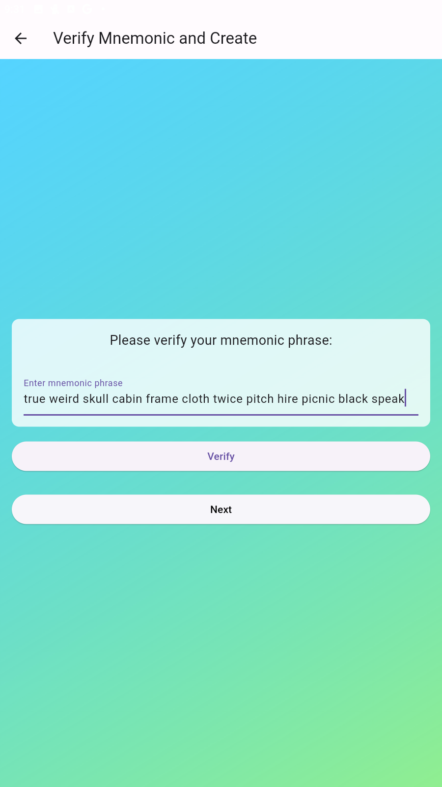 Wallet Creation Screen