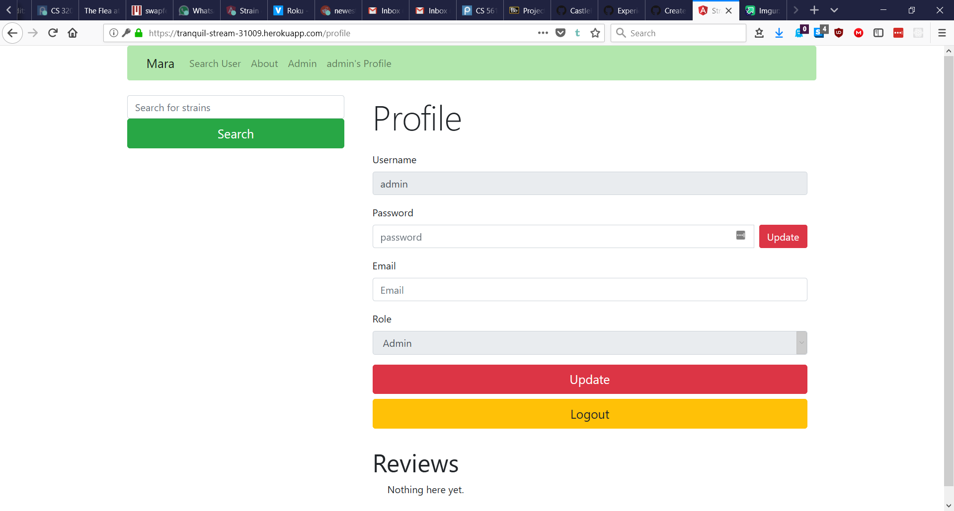 The admin user when logging in in should see the same things a regular user sees. Just the profile page about the admin. But on the nav bar should show an additional option to go to the admin console.