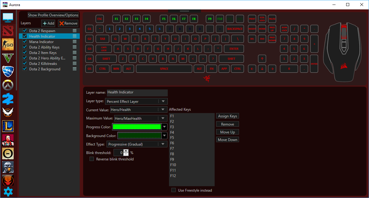 Secondary goal of Aurora is to integrate RGB lighting into popular games. RGB lighting is a nifty feature that is often underused, and as a result gamers with RGB gear are unable to utilize the lighting effects that they paid for.