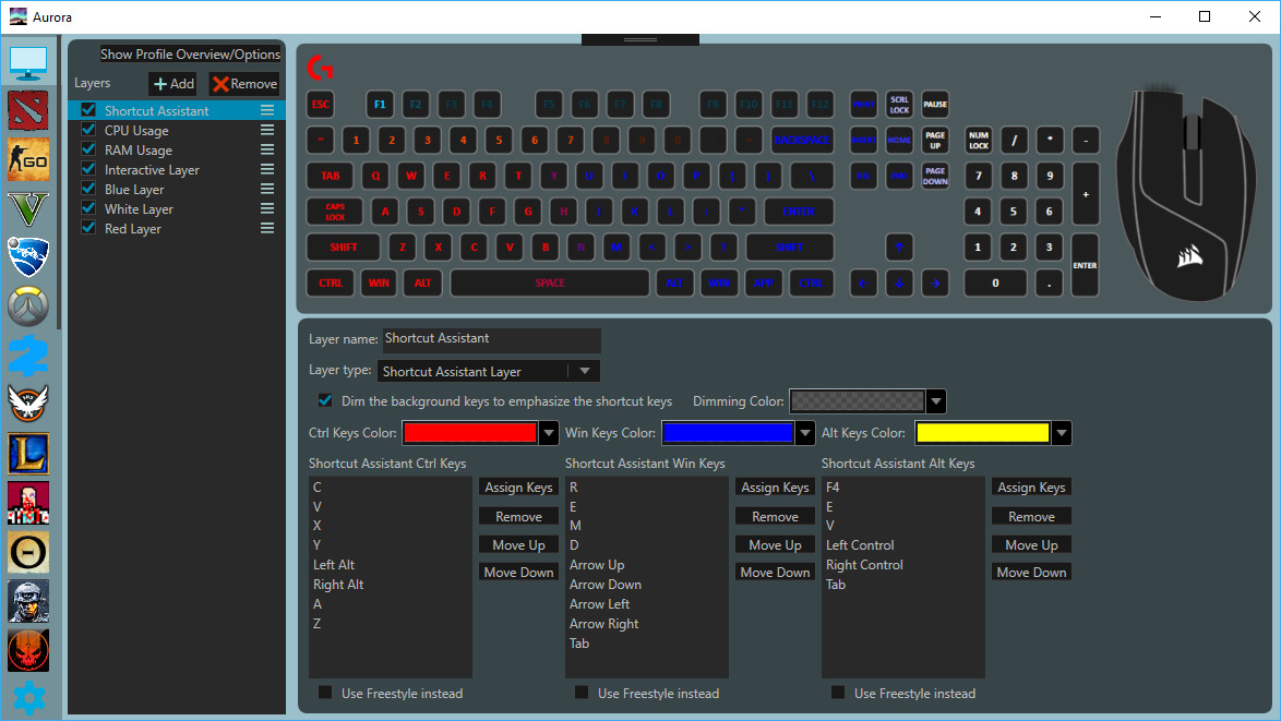 The main goal of Aurora is to allow RGB peripheral devices to work alongside other RGB peripheral devices from other brands. Meaning, if you own a combination of Logitech, Razer, or Corsair peripheral devices, they should be able to work together.