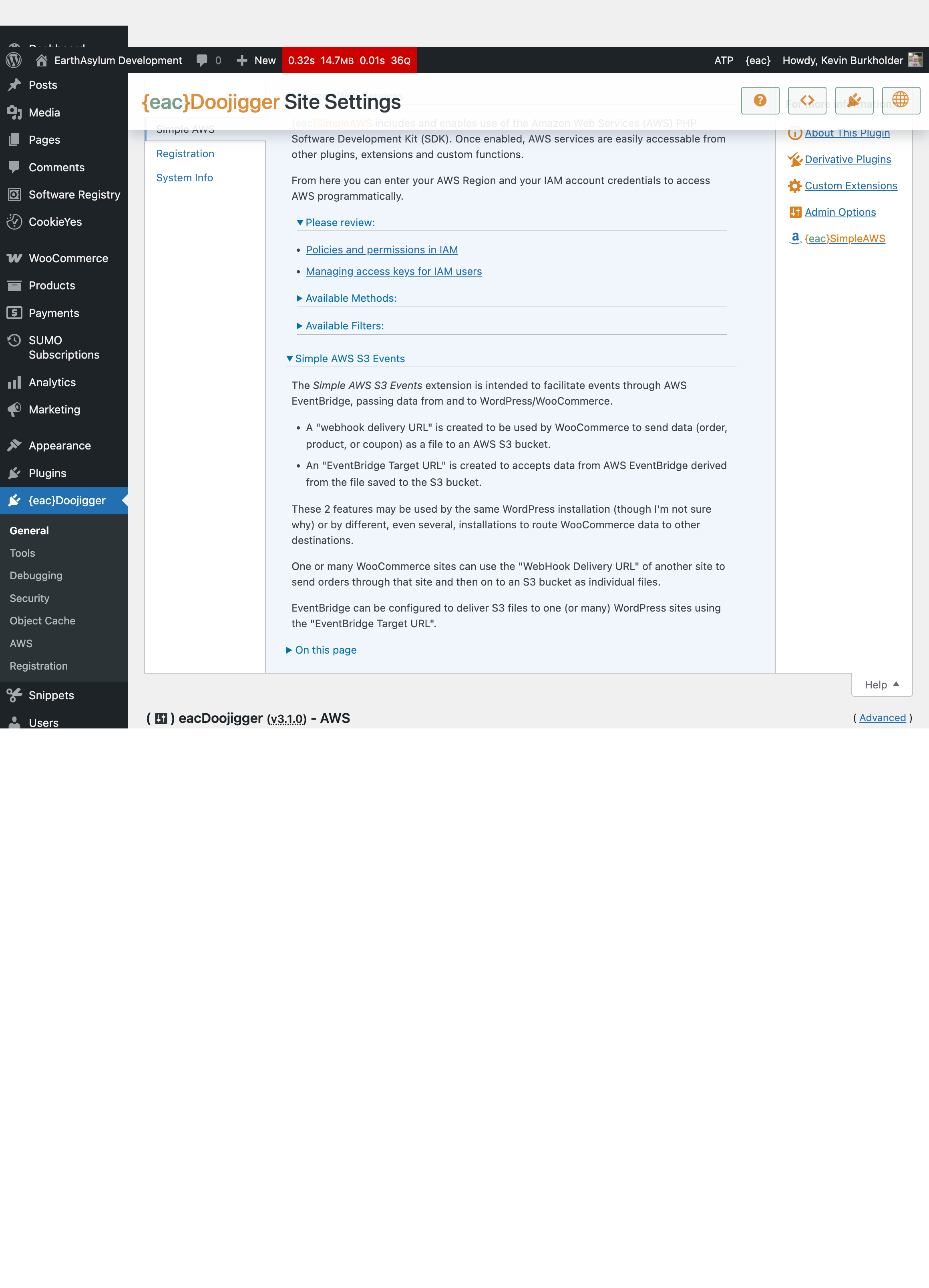 Once installed and activated options for this extension will show in the 'AWS' tab of {eac}Doojigger settings.
