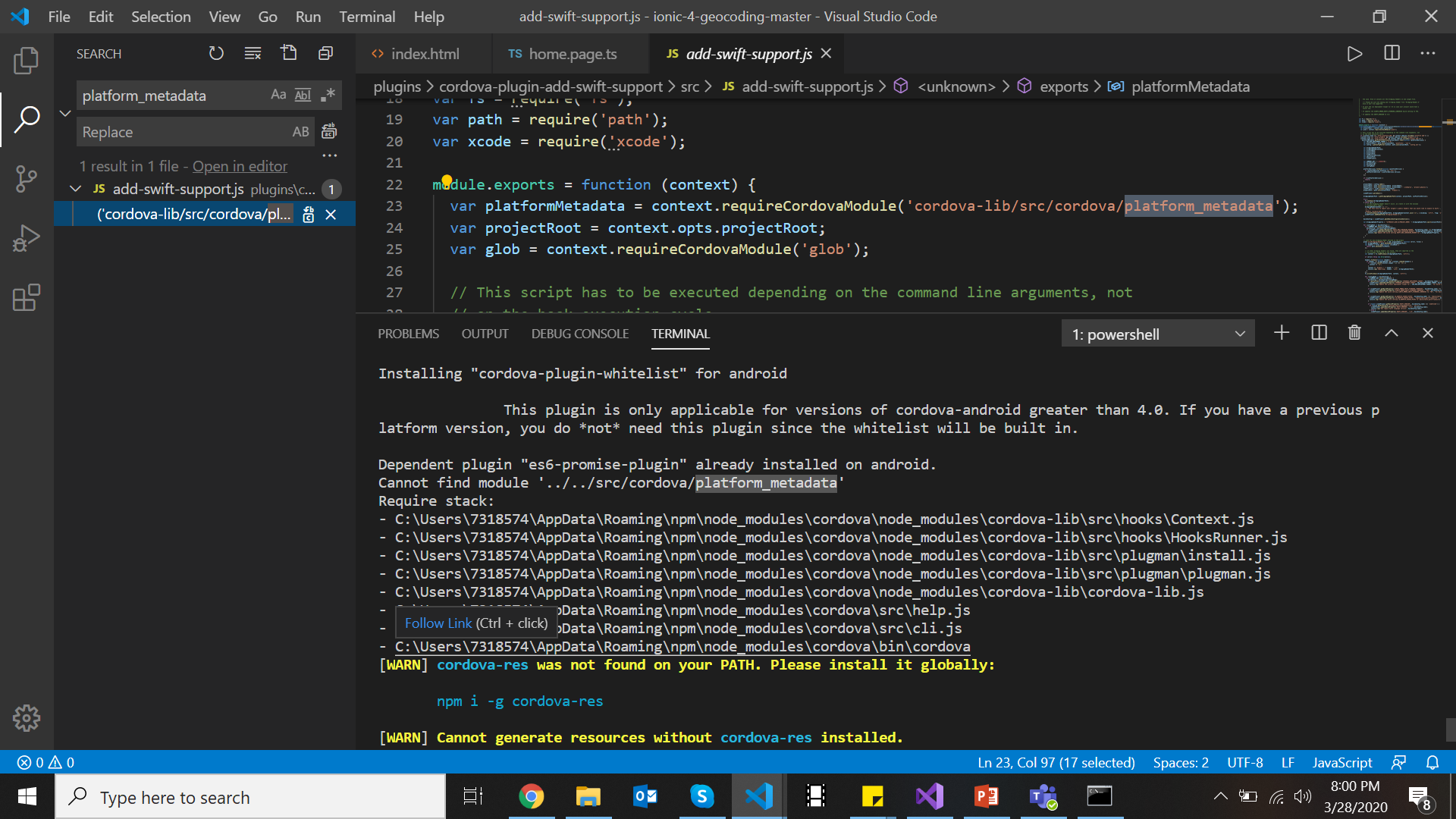 I am getting the below error when I try to build the app on to mobile.  Please hep me on this