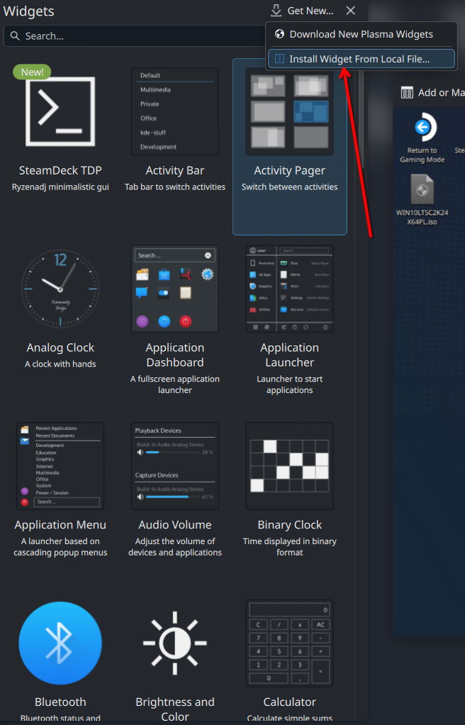- Pick downloaded "SteamDeck.TDP.plasmoid"