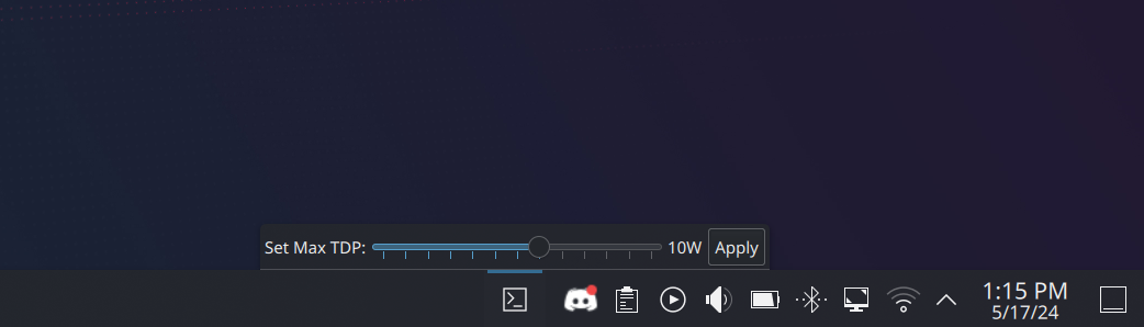 This applet allows you to manage the TDP (Thermal Design Power) settings of your Steam Deck and other AMD devices directly from the desktop mode. Created for my own use, but it may be useful to someone. Since the program to change the APU behavior uses FlyGoat/RyzenAdj, it also inherits all its functions. You can add your own flags from the widget configuration menu and save them as a preset. The Steam Deck chip is not fully supported by ryzenadj so some adj functions may not work.