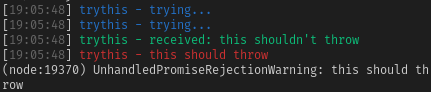 yarn add --dev @fizzygalacticus/trythistrythis can be used on both asynchronous and synchronous functions: