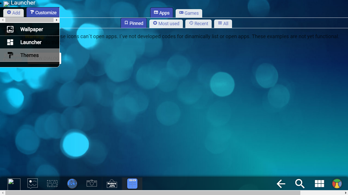 Screens is a Linux/HTML5-based modern, easy, rewardable (what?), beautiful, customizable, powerfull and open-source operating system. It have a UI based in Electron which controls the system. Electron Apps, Cordova Apps, Screens Apps (HTML5) and Progressive Web Apps support in plans.