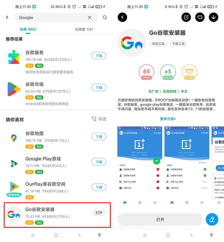 通过谷歌开放平台上架的应用和游戏都需要GMS的支持。上面两个商店和账号服务的应用也离不开框架作为“地基”,否则就会无法打开或无法使用全部功能。