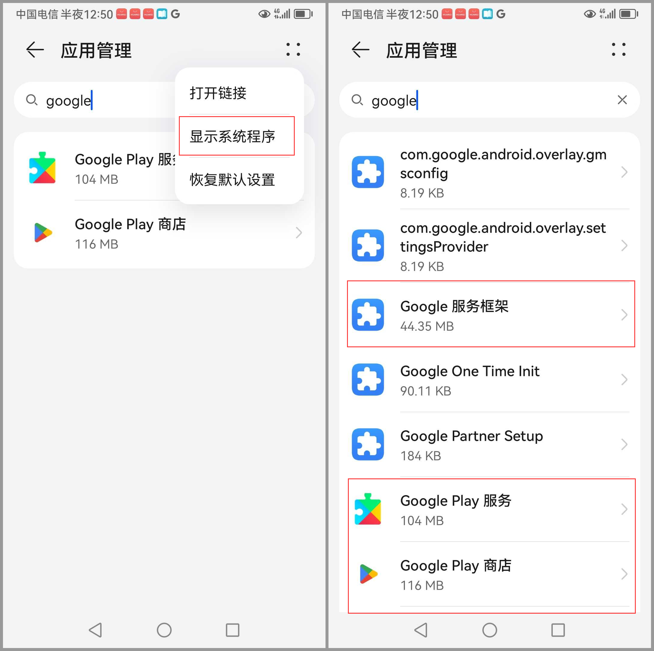 【谷歌服务框架】、【谷歌Play服务】这两个是后台服务,肯定在桌面上看不到。
