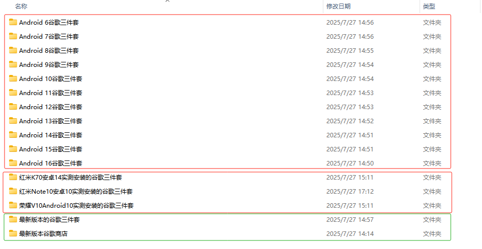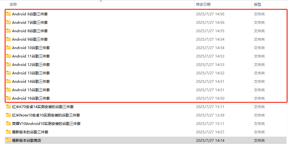 我这里提供了非常多版本的谷歌三件套,目前支持Android6.0到Android 16的安卓手机,基本上包括99.99%。
