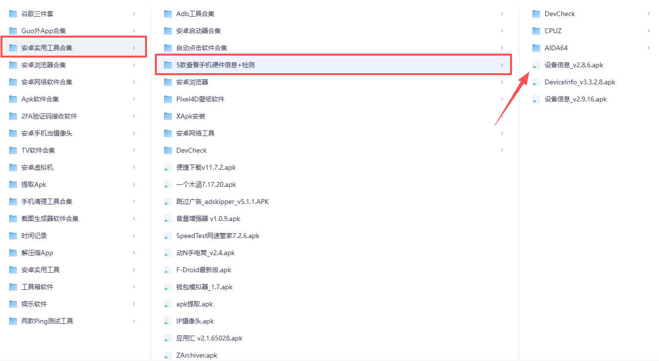所在文件路径「Android软件合集」>「Android实用工具合集」>「5款查看手机硬件信息+检测」。