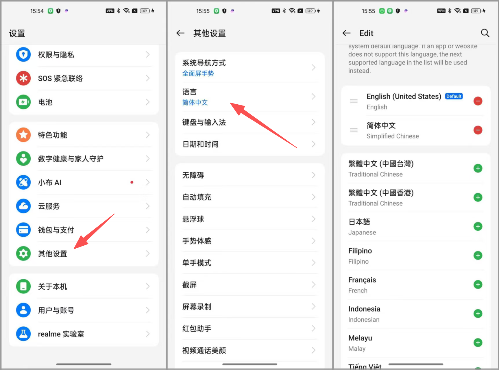如果需要显示成英文,在「设置」>「其他设置」即可选择语言。