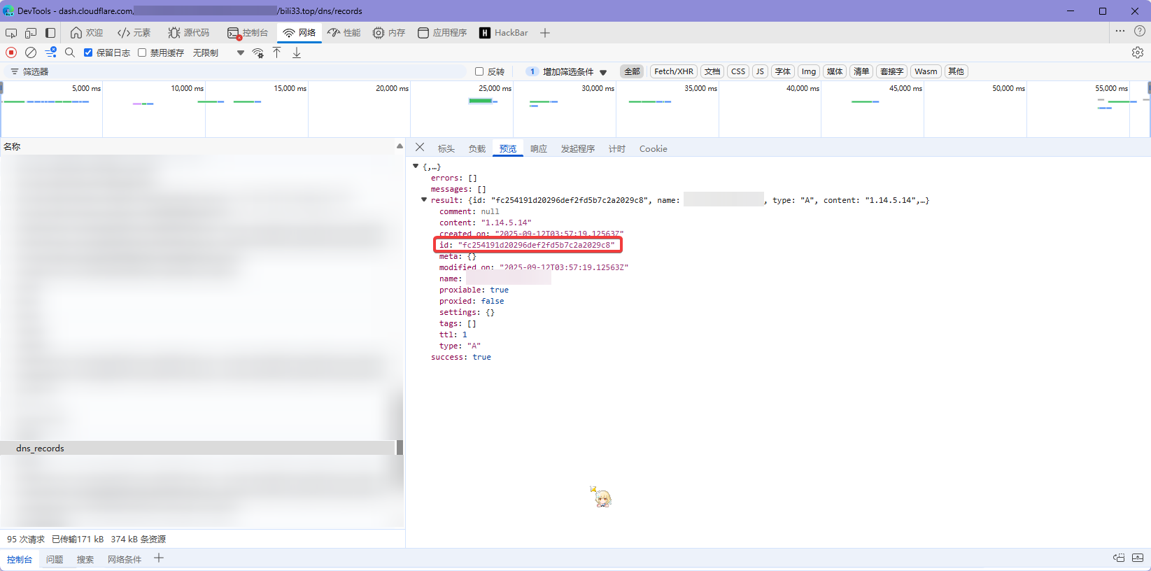 record_id 是你预添加记录的时候,在网络请求中返回回来的 id,通过控制台的网络选项卡找 dns_records 获得