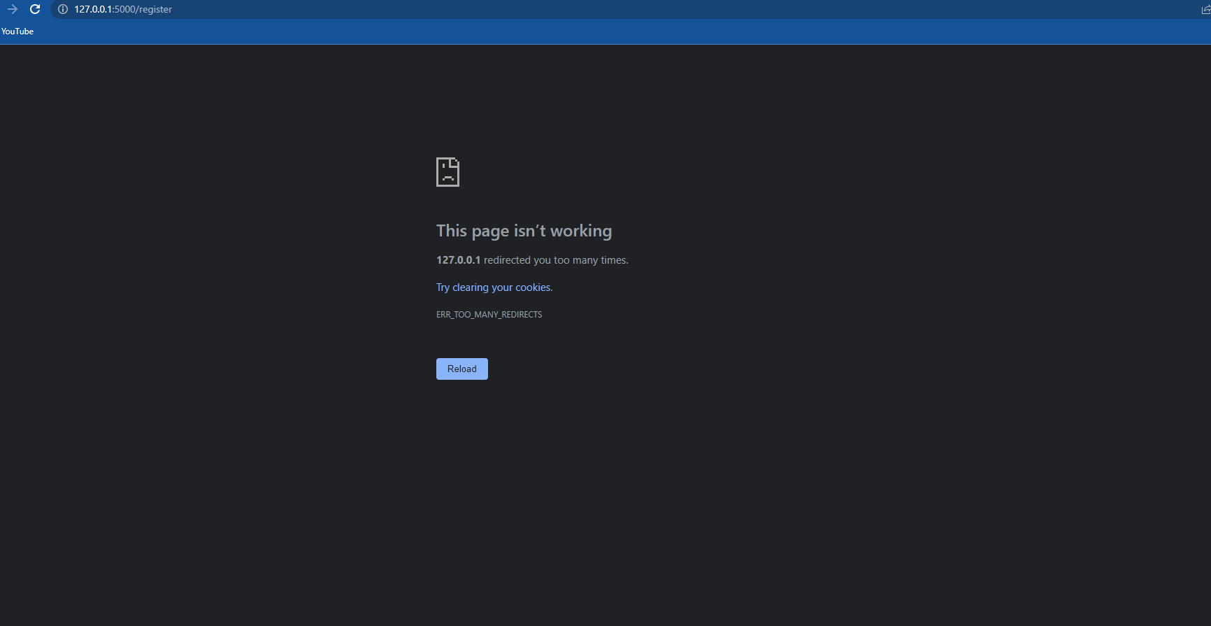 Ive only gotten to the welcome screen once and all the other times its given me this error: 127.0.0.1 redirected you too many times.