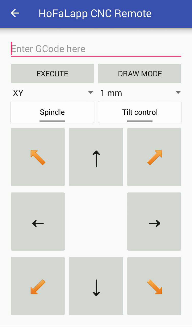 - Arbitrary G-Code commands can be entered directly on the phone, they are executed by the CNC device