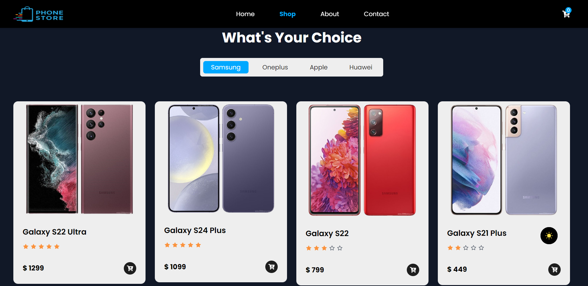PhoneStore is a single page fully responsive Frontend React application. It is fully responsive for every type of devices with dark and light theme functionality. Some features of this app:-