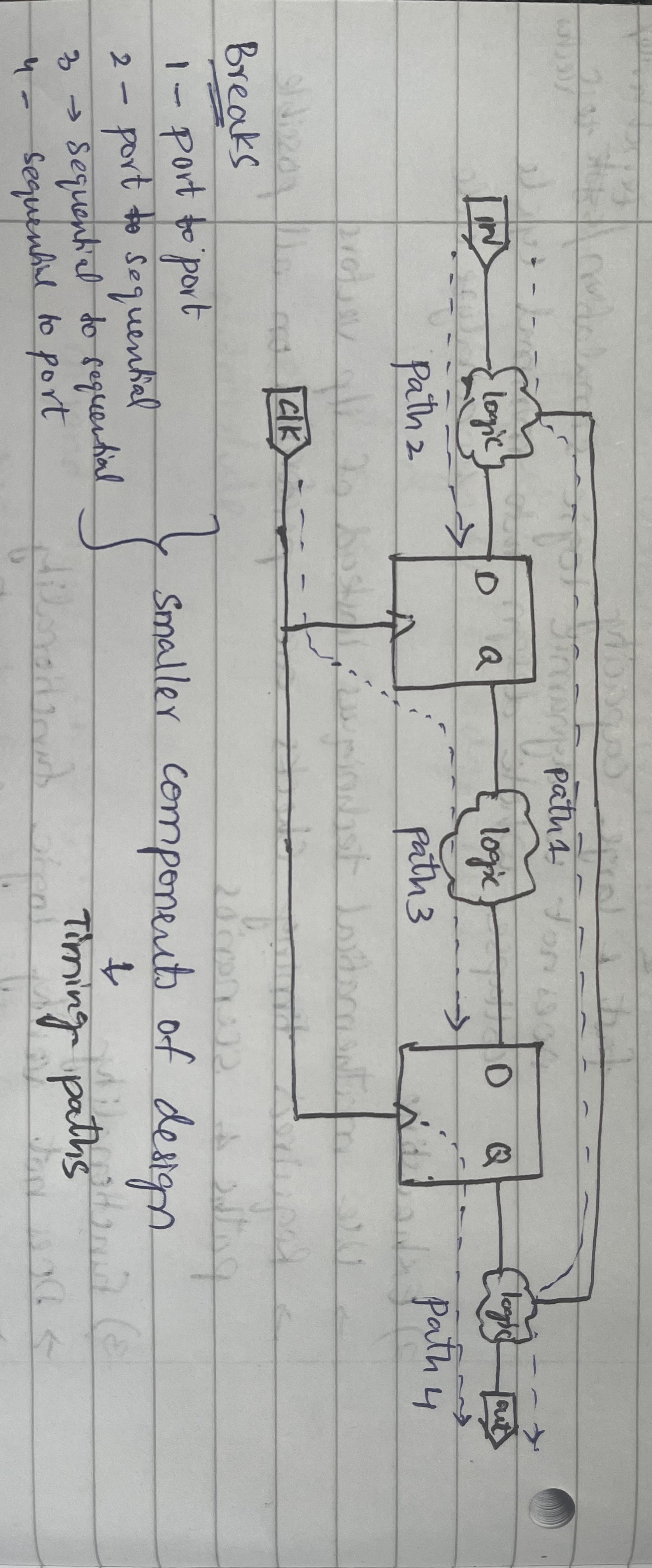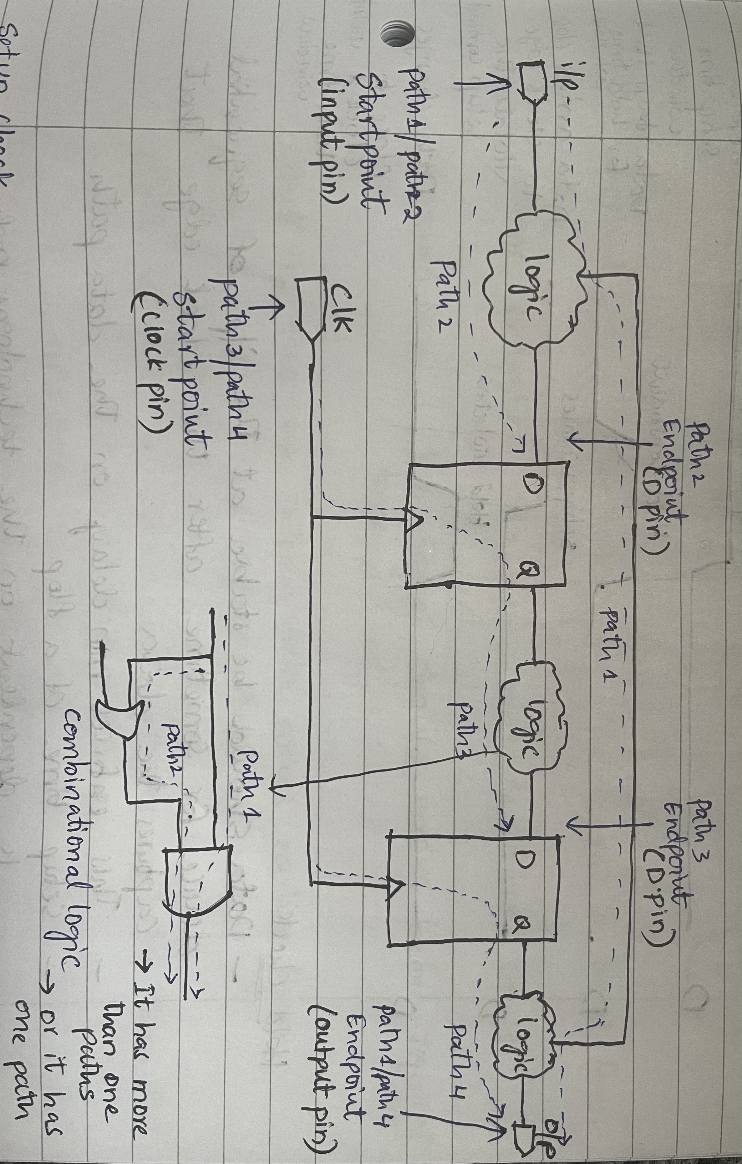 - The signal paths that involve flip-flops or registers in a sequential circuit and related to clock.