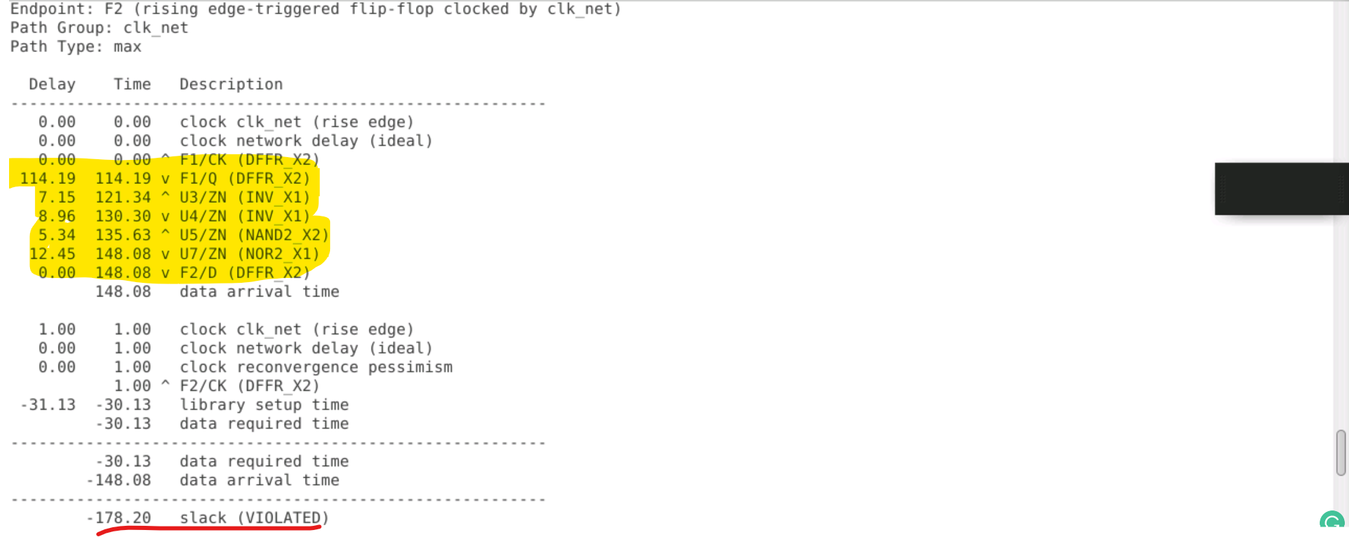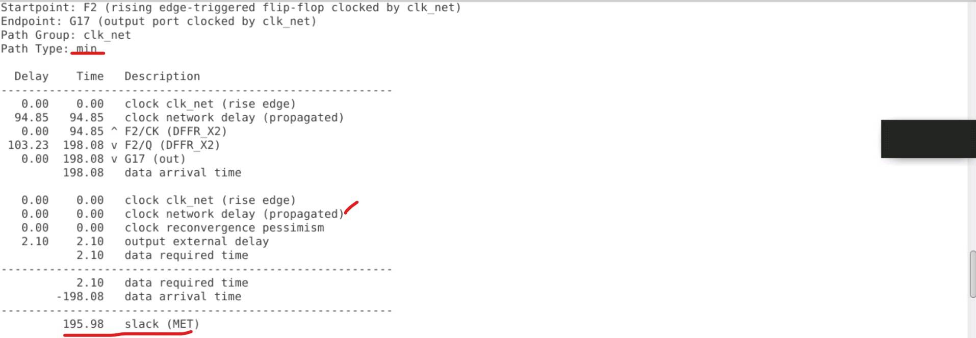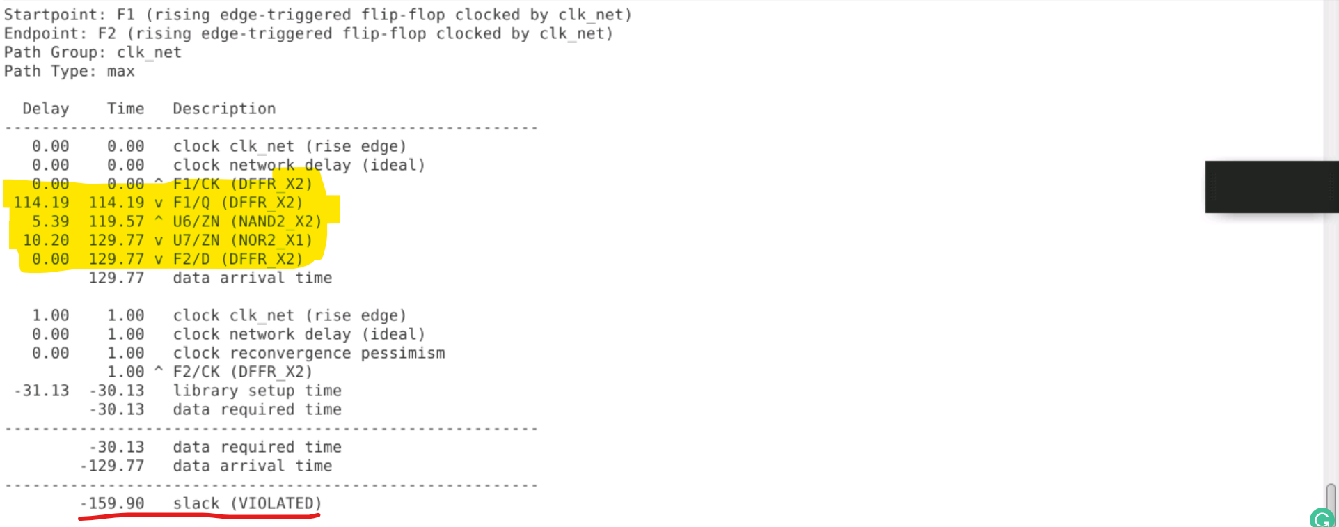 hold slack= Data Arrival Time- Data Required Time