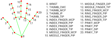 The palm is tracked using 21 reference points. These reference points are predefined. You can get the reference points for the tips from this image. The reference points are as follows-