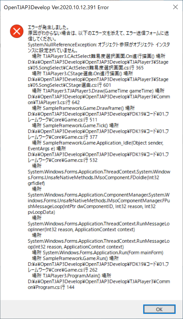 注意: お使いのTJAPlayer3-Developが最新のバージョンであること確認してください!