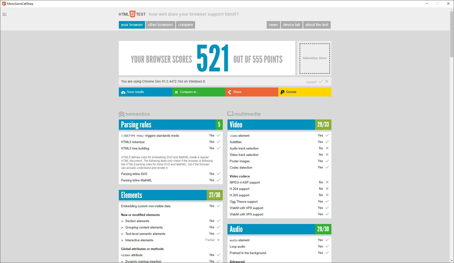 MonoGameCefSharp It's an example project to show a way to integrate CefSharp in MonoGame. Work at 4K@60 For more fluidity, build the project in release. You can change url in SharedDataManager. Mouse clic and drag are implemented but it's not perfect.