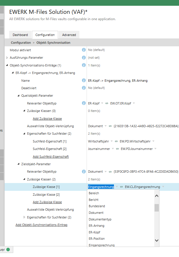 Here I would like to filter the classes selection to the object type I've chosen (e.g.) document and would like to set MFBuiltInObjectType.MFBuiltInObjectTypeDocument as default object type.
