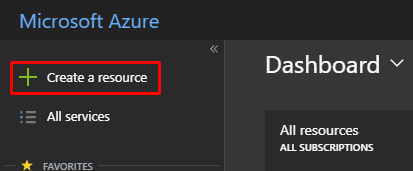 - Clique em Criar um recurso (o ícone + verde) na parte superior esquerda do portal.