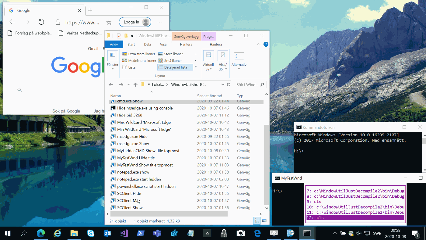 Hide and show windows, set them topmost, start a program maximized or run Powershell-scripts completely hidden without the console flashing.