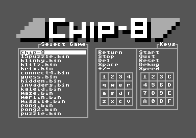 XP-8 is a CHIP-8 emulator that runs Chip-8 public domain roms. The Chip 8 actually never was a real system, but more like a virtual machine (VM) developed in the 70’s by Joseph Weisbecker. Games written in the Chip 8 language could easily run on systems that had a Chip 8 interpreter.