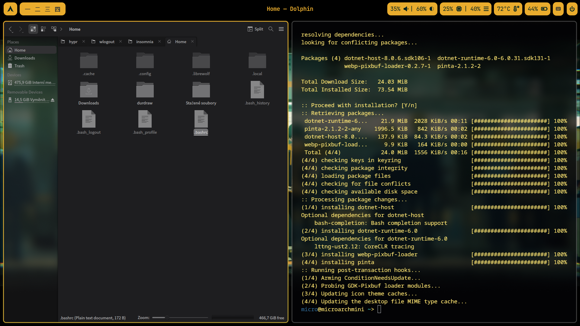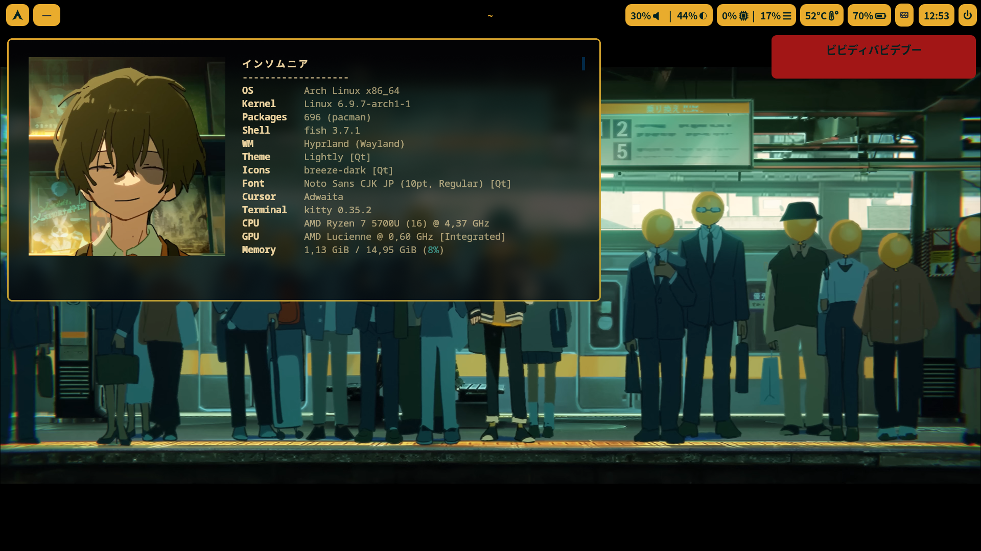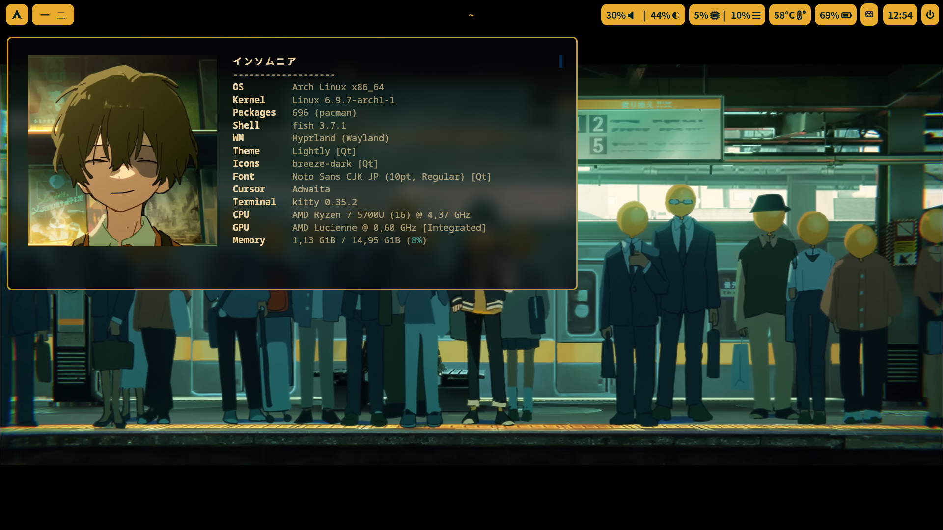 I used awesome 1amSimp1e's dots (Summer theme) for Waybar and Kitty as a template and changed the style and layout