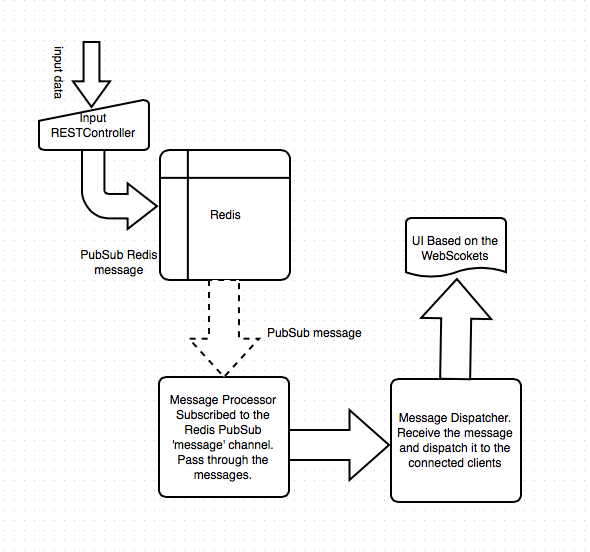 - Use Redis PubSub and WebSocket Client (Receive the message through the Redis PubSub and pass it on to the WebSocket)