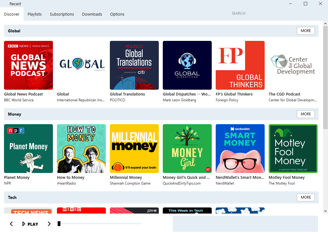 Recast is a rich, light and cross-platform podcast client for desktop (Windows/Mac/Linux)
