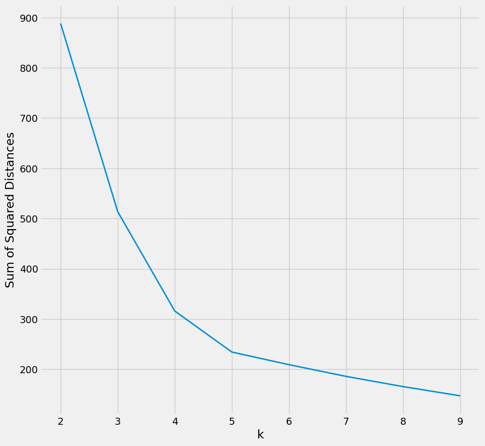 Figure 16: The plot generated from the elbow method suggests an optimal k value of 5.