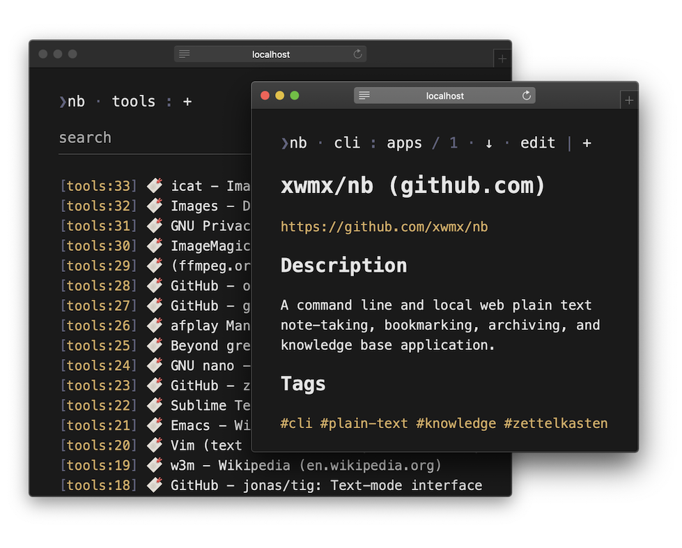 nb makes it easy to incorporate other tools, writing apps, and workflows.