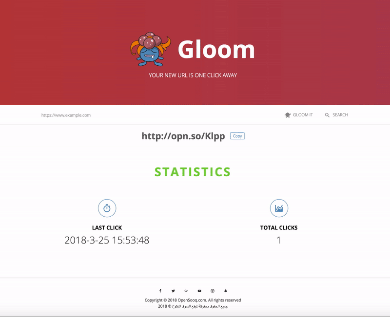 Gloom allows you to shorten URLs just as you would on your domain. Users can create these short links through the web interface For example, to shorten the URL http://www.google.com/, access UI admin: