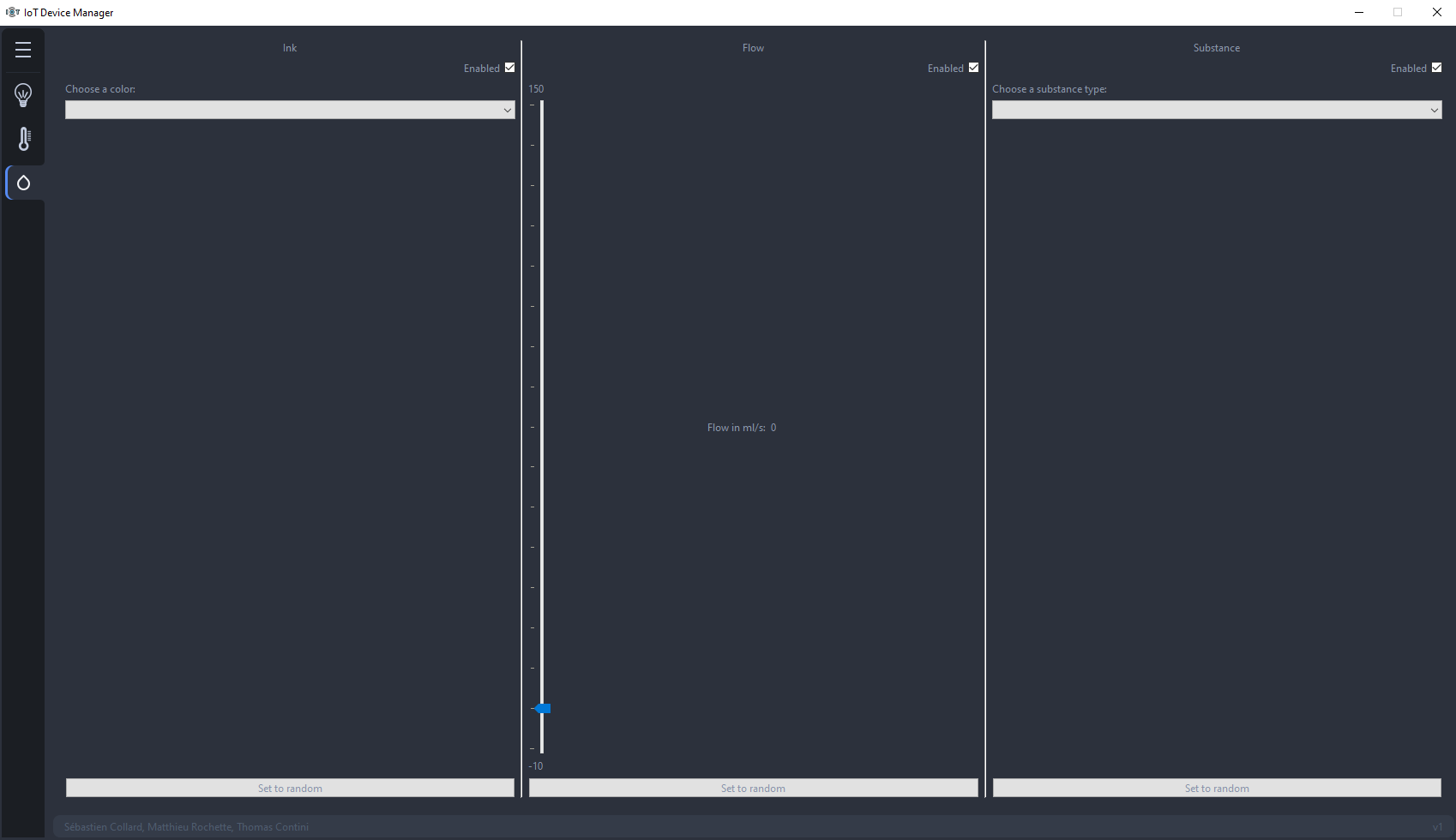 The fluid sensor detect the fluid type, color and calculate the flow in ml/s. Through the dashboard the user can determine the color and the type of the fluid. And can also set the flow.