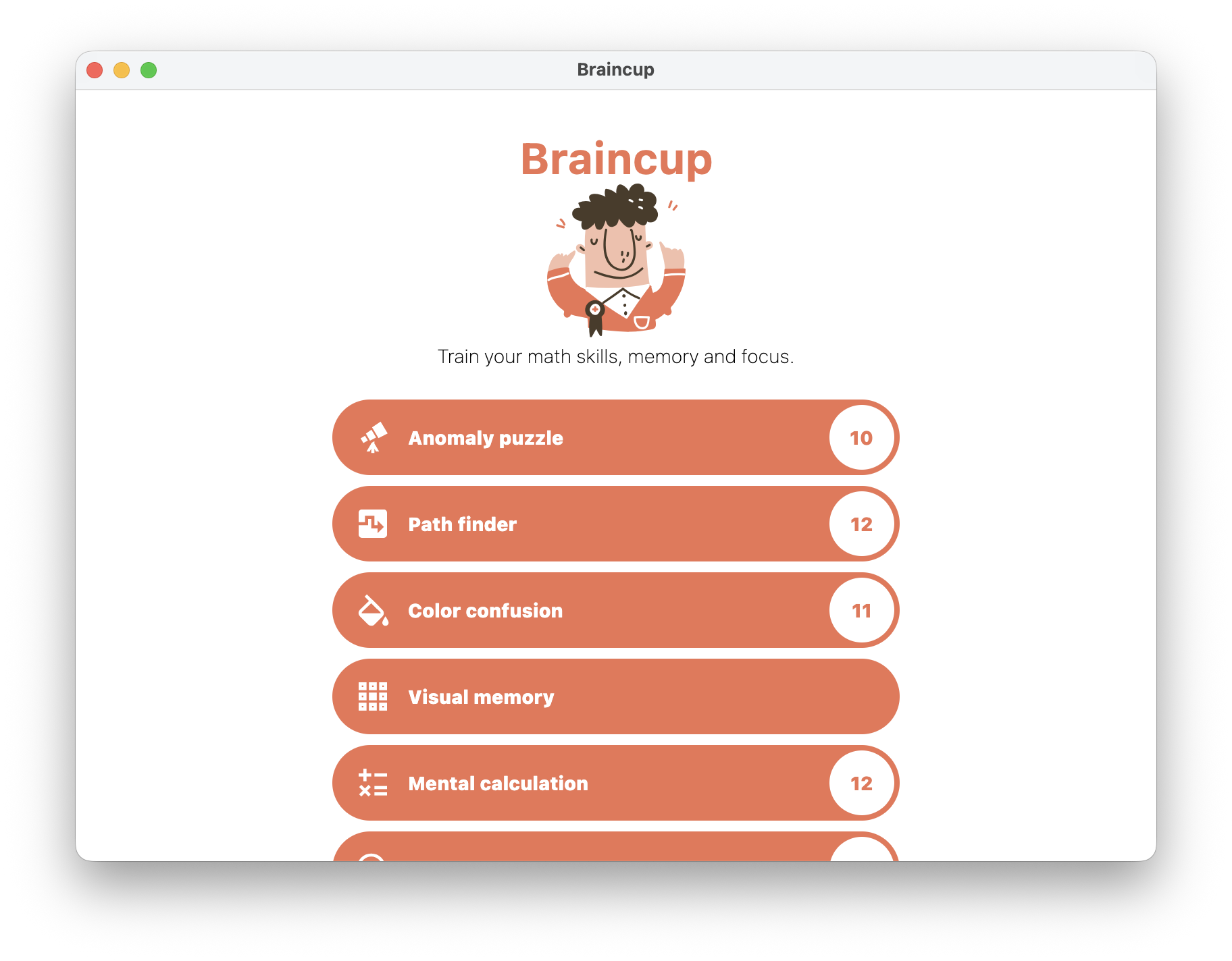 Build an open source math, memory and focus improvement app. The app itself consists of a bunch of small games. Right now I try to keep the games as simple as possible to allow the implementation for the terminal client.