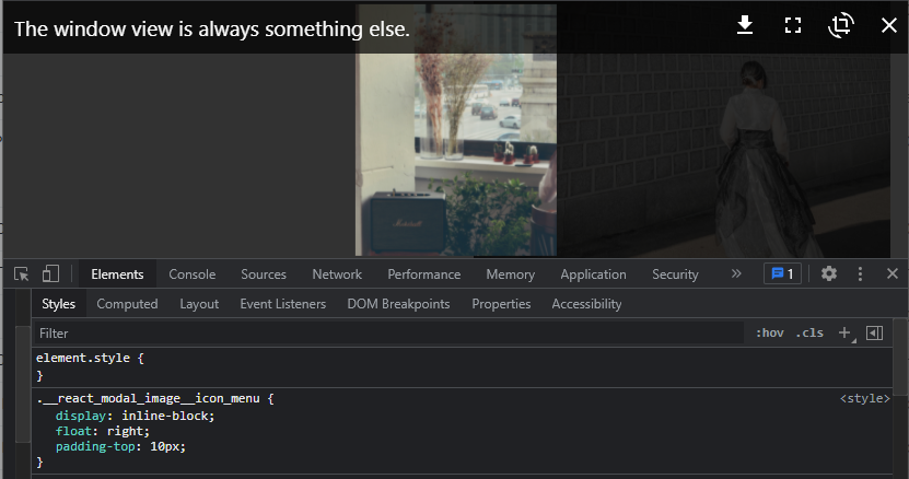 I used react-modal-image for a side project and was having troubles with the styling of .__react_modal_image__icon_menu (the icons stuck on top of the header) -> screenshots here: