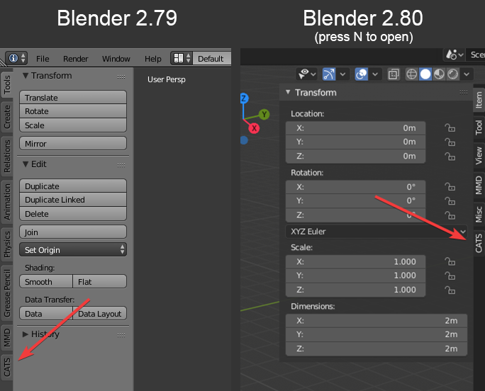 - Since Blender 2.80 the CATS tab is on the right in the menu that opens when pressing 'N'