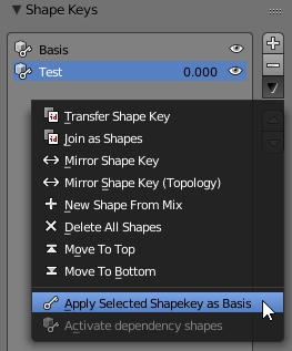 - Applies the selected shape key as the new Basis and creates a reverted shape key from the selected one.