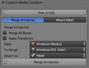 - Select the base armature and the armature you want to merge into the base armature in the panel