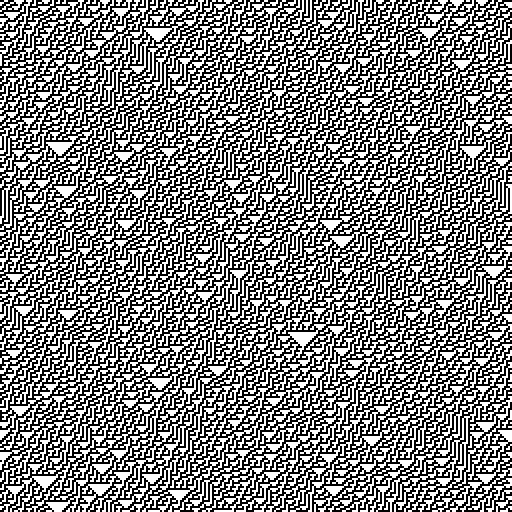 Rule 110 for 256 cells in 256 generations with an ever-changing random start configuration: