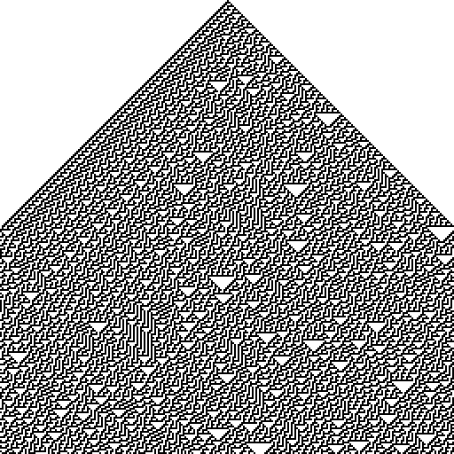 Rule 30 for 256 cells in 256 generations with a fixed seeded start configuration: