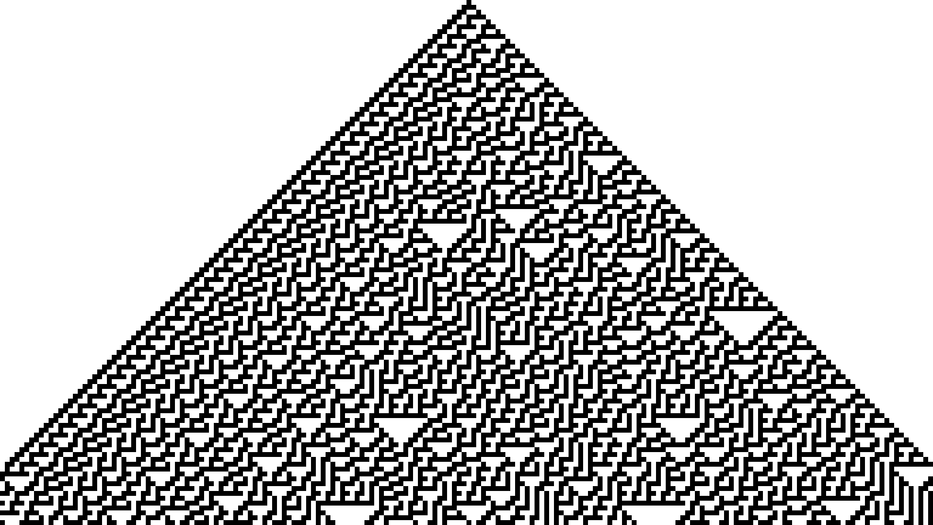 Rule 30 for 192 cells in 108 generations and each cell scaled to occupy 10×10 pixels (resulting in a 1920×1080 image):