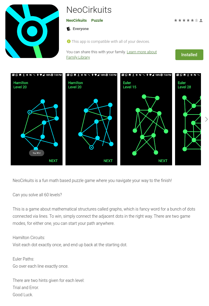 A puzzle game for Android based on graph theory problems, that includes a fully featured 'make mode' allowing users to create their own levels.