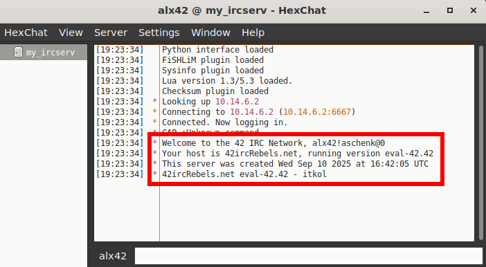<server_name>_<timestamp>.log). The client may send unsupported commands (e.g.CAP), but all core IRC functions still work (see below).