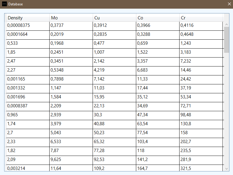 Density of linear factor has to be given from provided database