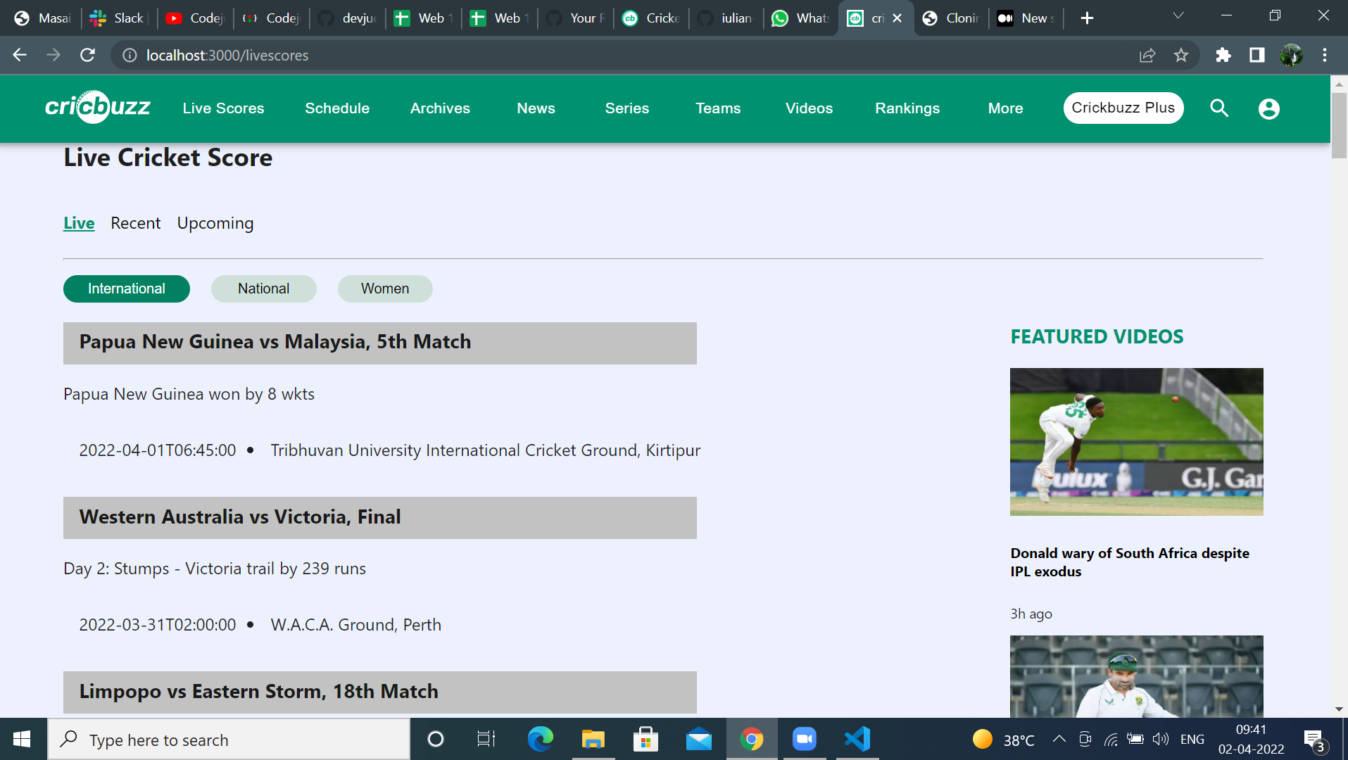 Cricbuzz is an Indian cricket news website owned by Times Internet. It features, news, articles and live coverage of cricket matches including videos, text commentary, player stats and team rankings.